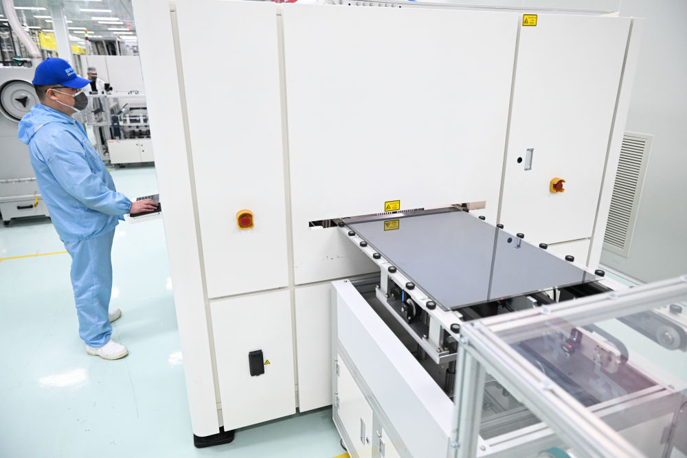 2024年2月29日,在位于江蘇省無錫市錫山區(qū)的極電光能有限公司智能生產(chǎn)車間,鈣鈦礦光伏組件正在自動化生產(chǎn)線上進行激光劃刻工藝。新華社記者 季春鵬 攝 觀浩瀚宇宙,中國航天2024年預計發(fā)射約百次,多個衛(wèi)星星座加速組網(wǎng),探索星辰的腳步正化作產(chǎn)業(yè)發(fā)展的動能。